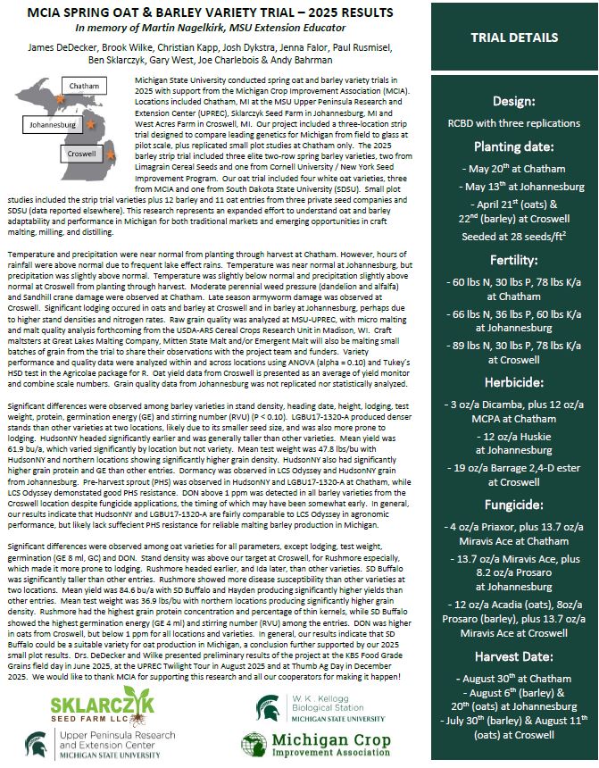 2025 Michigan State Wheat Performance Trials
